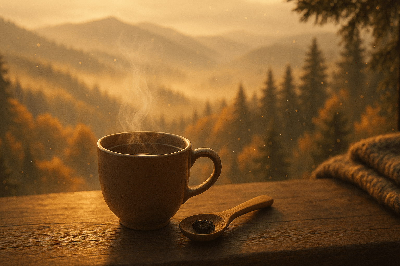 🫖 1 klick Shilajit på morgonen – upplöst i varmt vatten eller te.